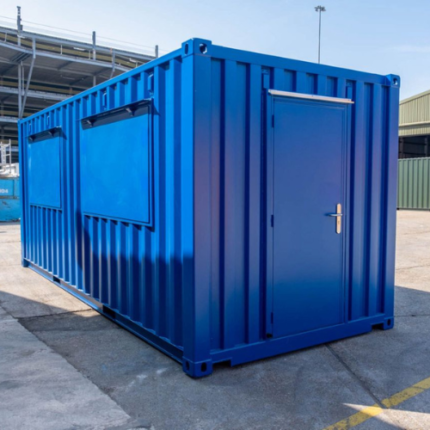 El contenedor de 20 pies con doble trampilla de servicio, perfecto para un punto de venta móvil, un food truck o un espacio de almacenamiento seguro. Robusto, modulable y personalizable, se adapta a sus necesidades profesionales.
