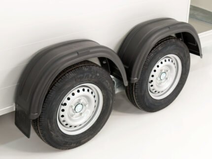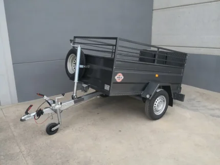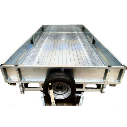 Remolque caja abierta con ruedas por fuera, fabricado en acero negro de 1,5 y 2,0 mm completamente soldado, imprimado y pintado con pintura de poliuretano metalizada, 1 eje de 1.000 kg marca al-ko o knott (mma 750 kg), 3 ruedas 155/80 r13, rueda jockey 48mm, etc…