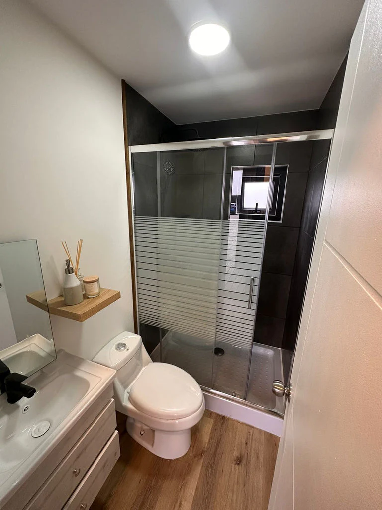 Baño completo / vanitorio, WC one piece, shower door 1.20×0.80mt