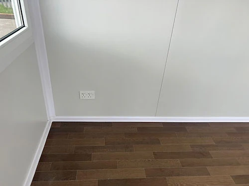 Detalles adicionales Cuarto de baño : 1 x inodoro 1 x armario de almacenamiento Color del marco : blanco Color del panel : blanco Longitud : 6000 mm Anchura : 2430 mm Altura : 2791 mm Orificios para montacargas : sí Techo : espuma de PU de 70 mm Panel de pared exterior : lana de roca de 50 mm Piso : Piso de PVC de 1,8 mm/2,0 mm con panel estructural impermeable de 18 mm Puertas exteriores : Puerta de acero de 920 x 2035 mm (1) Puertas interiores : Puerta de acero de 700 x 2000 mm (1) Ventanas : Ventana corredera de PVC de 940 x 1330 mm con persiana enrollable (3) Ventana de PVC de 800 x 550 mm con mosquitera (1)